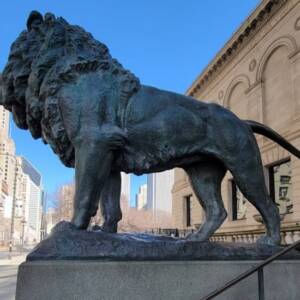 The two iconic bronze lions at the Michigan Avenue entrance were sculpted by Edward Kemeys and have stood guard since 1894.