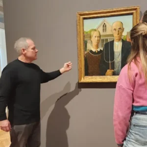 The museum holds one of the most famous American paintings, Grant Wood’s American Gothic.